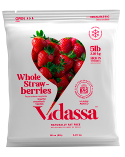 Fresas congeladas, 100% naturales, 0g azúcar añadida, sin preservantes, excelente fuente de vitamina c, lista para consumir.